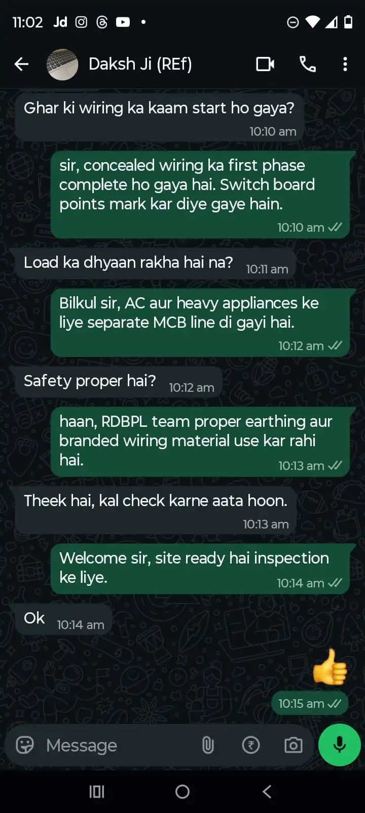 “RDBPL team completed full house electrical wiring safely and professionally. All switches, lights and MCB panel installed perfectly. Highly recommended electrical contractor in Lucknow.”